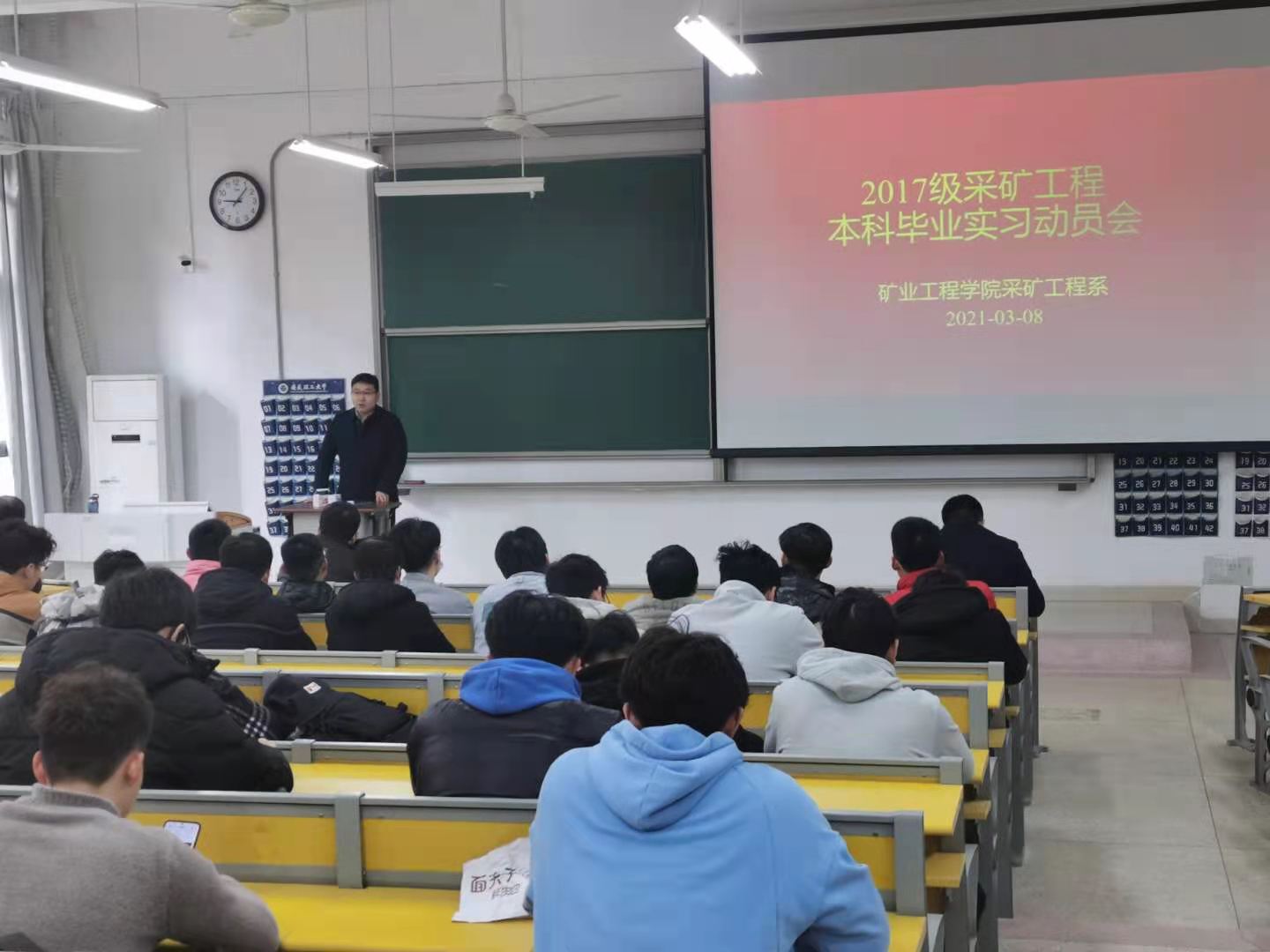 3月8日上午,足球心水论坛 在明理北110和112教室召开了2017级采矿工程和交通工程专业学生毕业实习和毕业设计动员会,足球心水论坛 党委副书记张向林和副院长张向阳作实习动员。