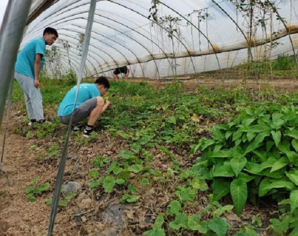 7月18日,团队来到柳新村进行走访调研。在规划好参观路线和宣讲注意事项后,同学们开始了学习之旅。脱贫成功后,村子里陆续盖起了新房子,也铺上了水泥地,生活也变得有滋有味。实践团首先来到了一户五保户的蔬菜大棚,四五个大棚里菜瓜、香瓜、羊角蜜、西瓜的种植区域规划的井井有条,正值果蔬的成熟季节,村民邀请同学们品尝香瓜、西瓜等作物。在聊天中得知,这块地是村里拨给他用于改善伙食,增添时蔬,像这种地村里还有许多,称为小菜园工程,在村民的悉心经营下几乎不用愁蔬菜的来源。离开小菜园,一行人继续前进,沿路同学发现家家户户门口都有三个类似下水道的井口,干部讲解到这是响应国家政策修建的三垒式环保化粪池,非常适合农家厕所的改造,有卫生环保、经济适用、简便易行的特点。随后小队到达村里的乡村舞台,这里时常有戏班子来搭台唱戏,旁边有草棚凉亭和公共厕所,便于村民农活归途休息和方便,精致的木艺修剪、精细的垃圾分类、朗朗上口的村规民约无一不让同学们称赞。
