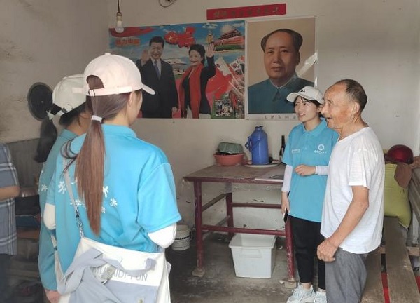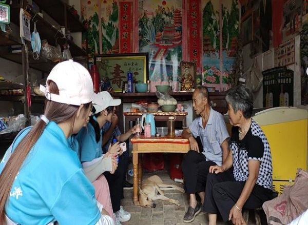 实践团去往了村民家里进行慰问,第一户人家是一位82岁的独居老人,吴爷爷虽是独居,屋内却干净整洁。老人身体依旧健朗,通过交谈得知现在的医保涉及广泛,生病可用医保报销,不必担心看病费用,让乡亲们安心。并且逢年过节村里会送油和米,每月还有相应补贴,解决了老人的基本问题。第二户人家是一对夫妻,今年76岁,夫妻二人喂养了羊,开了小卖铺,还种植了农作物。与夫妻二人交谈完后,团队还特地帮他们打扫了院子。