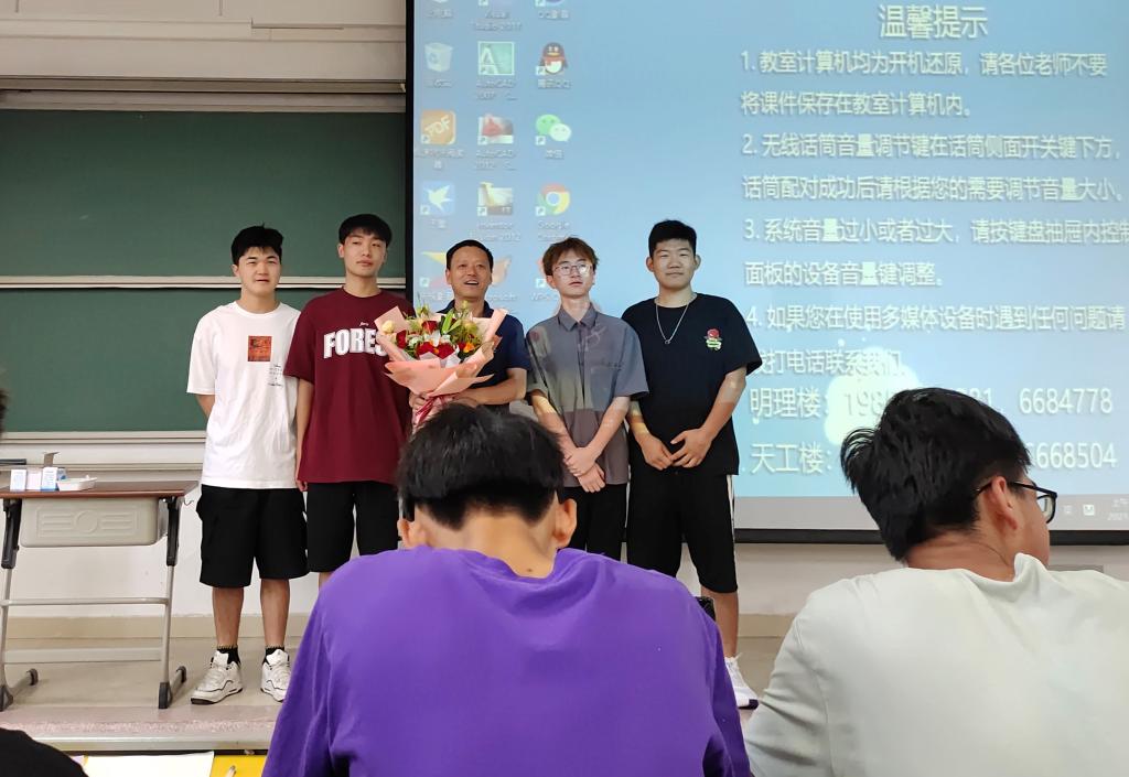 学生给任课教师刘钦节献花(摄影:田秋实、汪晓辉、王奂然等)