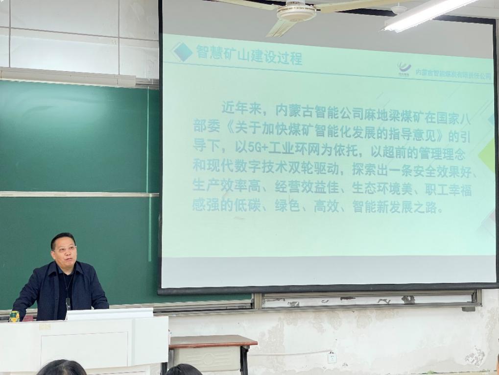 10月24日上午,足球心水论坛 在天工楼303、304教室举行专题报告会,皖北煤电集团内蒙古智能公司党委书记吴劲松和总工程师阚磊校友为师生做“5G+智慧矿山建设实践与创新”专题报告。足球心水论坛 院长杨科主持报告会。足球心水论坛 教师、皖北煤电优秀青年人才培训班学员、本科生、研究生400余人参加报告会。