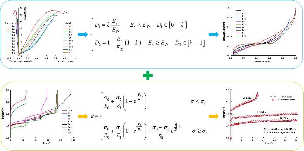 2.由我院博士研究生吕鑫及杨科教授共同完成的题为《Characteristics of early-damaged cement stone and the creep behavior after damage》论文发表在《Construction and Building Materials》上。该论文研究了巷道混凝土喷层损伤后的蠕变行为,建立了早期水泥石试件损伤量求解方程,修正了损伤蠕变模型,确定了早期水泥石损伤阈值,分析了损伤量对蠕变破坏强度、瞬时应变及蠕变应变的影响,探讨了损伤水泥石的蠕变失稳模式,填补了早期混凝土损伤蠕变研究的空白,该研究得到了安徽理工大学研究生创新基金项目的支持。
