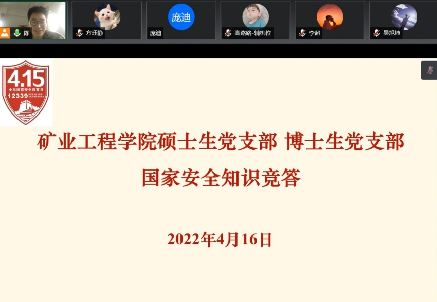 采矿工程、交通工程本科生党支部举办国家安全日主题座谈会,与会人员观看了宣传“国家安全及反有组织犯罪”的动画短片,并针对宪法和《国家安全法》《反分裂国家法》《网络安全法》等国家安全相关法律开展专题学习宣传。随后,参会党员结合自身实际,围绕国家安全、国家安全教育、师生思想政治工作、学校安全管理等主题进行了热烈的讨论和交流发言,从不同的角度发表了自己对国家安全、国家安全教育的理解和认识。大家一致认为,国家安全就在自己身边,作为一名新时代的大学生党员,要有责任担当意识,不断增强国家安全意识,成为国家安全的践行者、传播者和守护者。