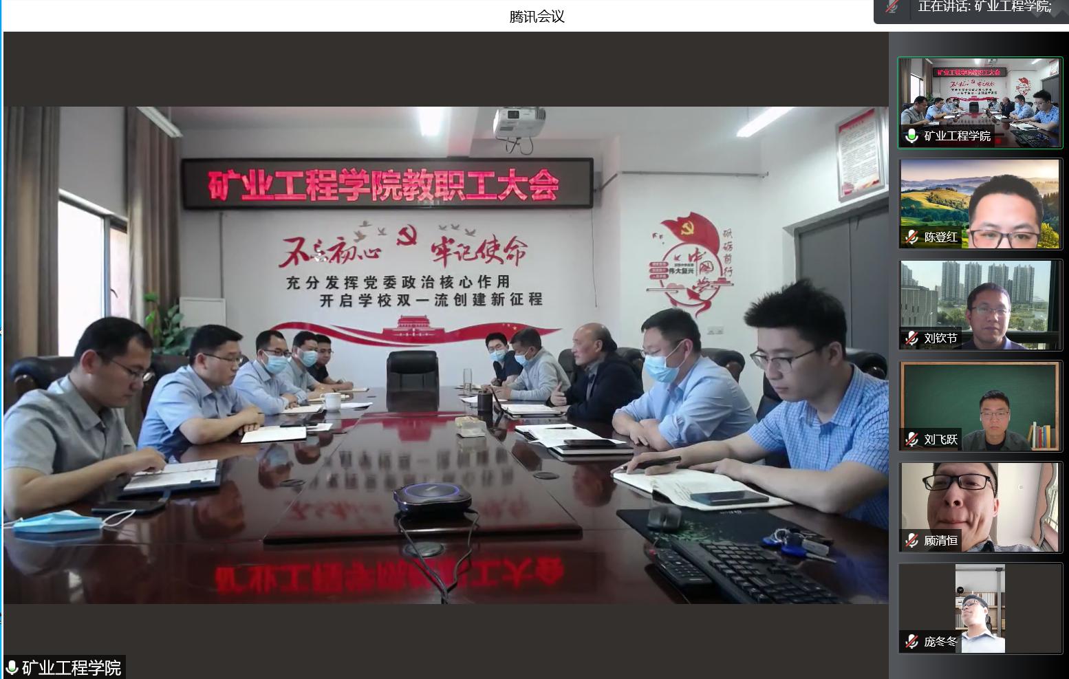 5月6日上午,矿业与工程足球心水论坛 通过线上线下相结合的方式召开全体教职工大会,会议由足球心水论坛 党委书记盛鹏飞主持,足球心水论坛 领导班子成员及全体教职工参加会议。