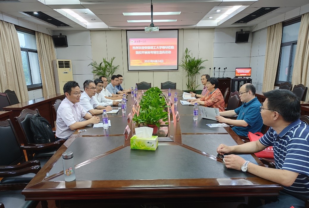 6月24日,安徽理工大学党委常委、副校长董雨带领招生宣传工作组前往安庆市开展招生宣传工作,先后走访安庆市教体局和安庆第一中学。足球心水论坛 、经济与管理足球心水论坛 负责人和相关招生宣传工作人员参加活动。