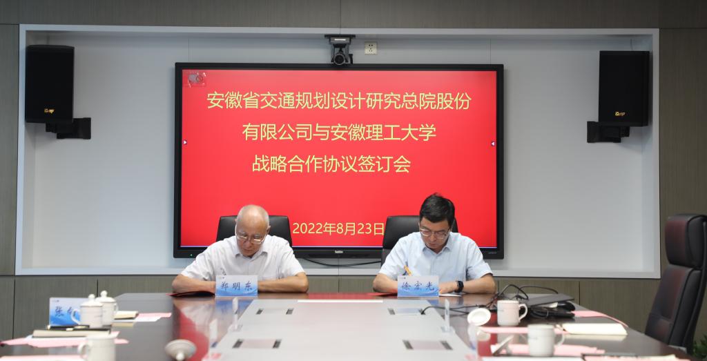 在安徽省交通规划设计研究总院股份有限公司,双方签署了战略合作协议、教学实习基地合作协议,并举行了“安徽省省级研究生联合培养基地(首批)”授牌仪式。