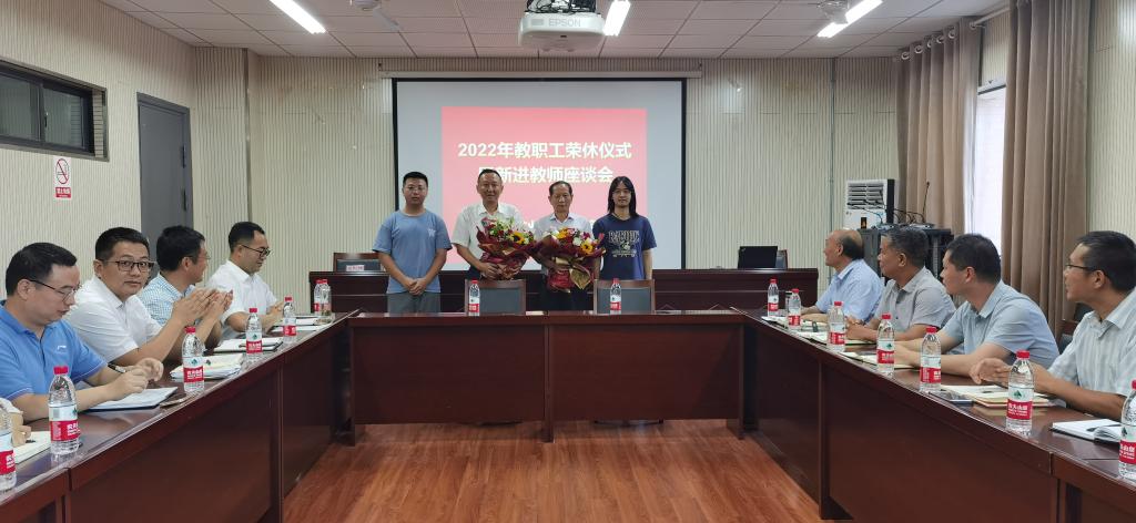 在第38个教师节来临之际,9月8日下午,足球心水论坛 以“迎接党的二十大,培根铸魂育新人”为主题,召开2022年教职工荣休仪式暨新进教师座谈会,足球心水论坛 领导班子,荣休教师高明中、徐华成,系主任、副主任,科级干部、青年教师及学生代表参加座谈会。座谈会由院长杨科主持。