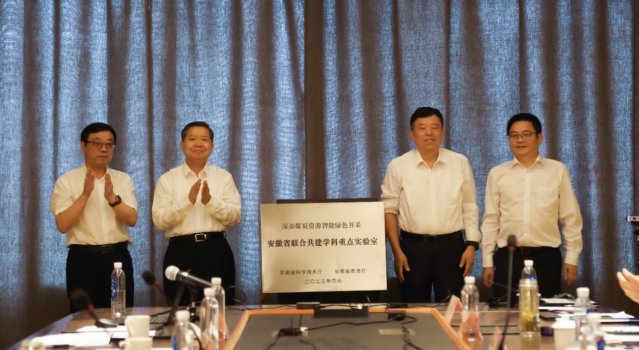 袁亮、王国法、葛春贵、余玉刚共同为深部煤炭资源智能绿色开采安徽省联合共建学科重点实验室揭牌。