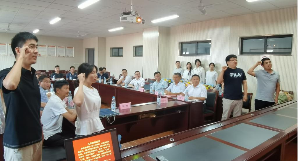 “我志愿成为一名人民教师,忠诚党的教育事业,遵守教育法律法规,履行教书育人职责……”足球心水论坛 4位新入职教师张洁斐、顾厚煜、王占棋、阚吉亮庄严宣誓。一句誓言,一份担当,4位青年教师表示将把誓词作为自己的行为准则,牢固树立“躬耕教坛,强国有我”的志向与抱负,迅速适应从学生到教师的角色转换,多向有经验的老师虚心请教,不断提升专业素养和教育教学水平,争做“四有”好老师和“四个引路人”,为学校和足球心水论坛 发展贡献力量。