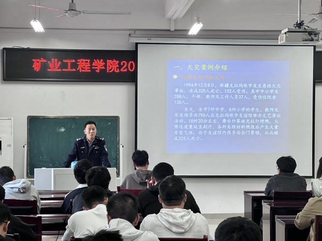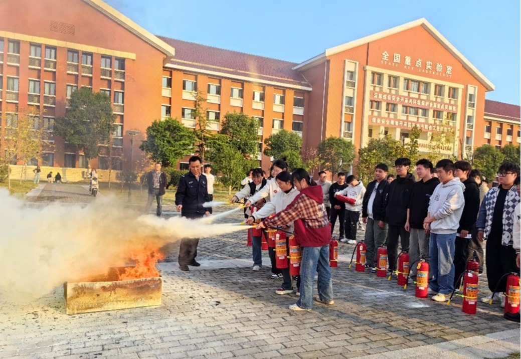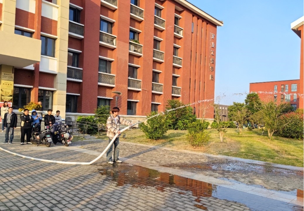 彭广峰运用详实的数据、丰富的视频图片以及典型的火灾事故案例,多维度向学生阐述消防安全的重要性,重点对校园内常发的各类消防安全风险隐患进行详细的剖析讲解,并向学生传授火灾事故如何应急逃生的“十要诀”、现场疏散和灭火实操演练要求。