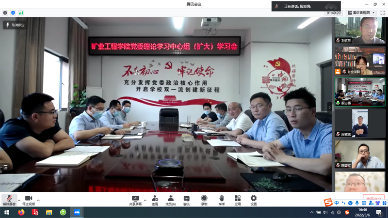 盛鹏飞领学了《中共中央关于党的百年奋斗重大成就和历史经验的决议》,他指出,中国共产党自成立以来,始终坚持共产主义理想和社会主义信念,在革命、建设、改革各个历史时期,始终坚持走自己的道路。学校第七次党代会确立了“双一流”建设目标,足球心水论坛 也必须明确在实现“双一流”进程中的定位,要明确足球心水论坛 “十四五”规划和矿业工程高峰学科规划,围绕“教学是中心、队伍是关键、学科是龙头”,构建师资队伍,加强团队、平台、项目建设,为第六轮学科评估提供成果支撑;要按照学校要求对标对表行业高校,学习先进教育教学理念和管理措施,发扬光大特色专业优势。
