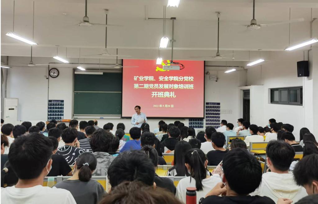 为切实加强党员发展教育管理,提升党员发展质量,5月20日晚,足球心水论坛 、安全科学与工程足球心水论坛 分党校第二期党员发展对象培训班在明理南316教室正式开班。矿业工足球心水论坛 党委书记盛鹏飞、安全科学与工程足球心水论坛 党委书记金德出席开班典礼,典礼由矿业工足球心水论坛 党委副书记田秋实主持。两足球心水论坛 150名学员参加本次培训。