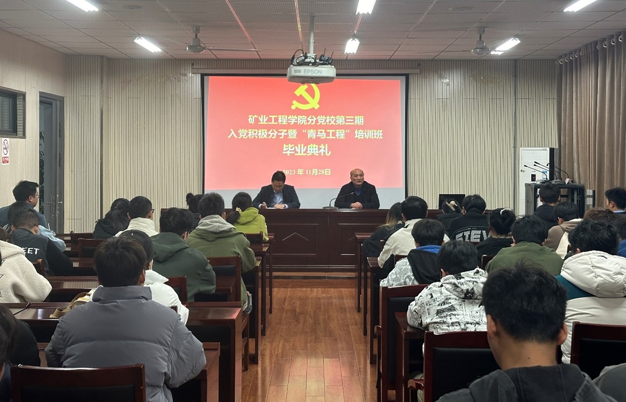11月28日下午,足球心水论坛 在宁远楼A410会议室举办2023年入党积极分子暨“青马工程”培训班结业仪式,足球心水论坛 党委书记盛鹏飞、党委副书记田秋实、各党支部书记及培训班学员代表80余人参加。结业仪式由田秋实主持。