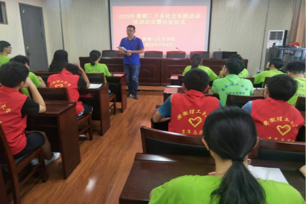 7月4日下午,能源与安全足球心水论坛 在宁远楼A410报告厅举行2019年大学生暑期“三下乡”社会实践队员培训暨出征仪式。各年级辅导员和60余名大学生志愿者参加。