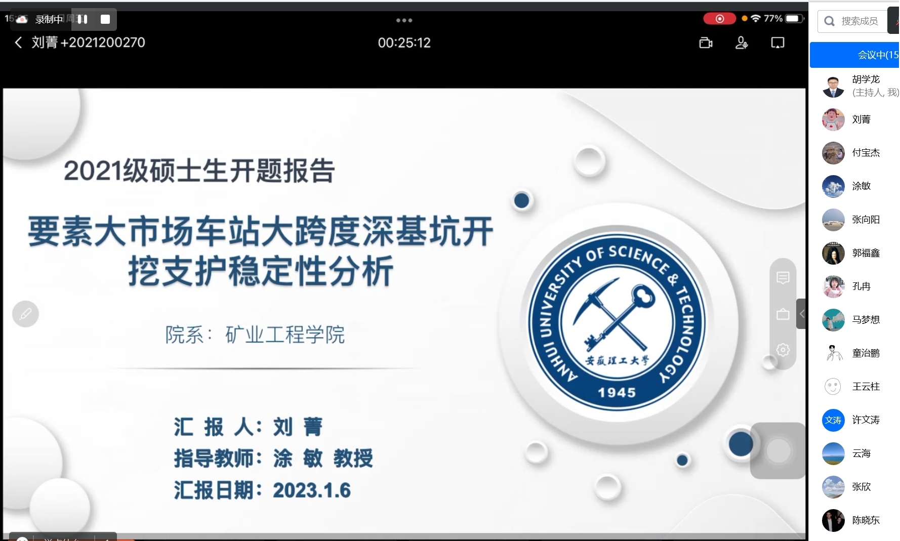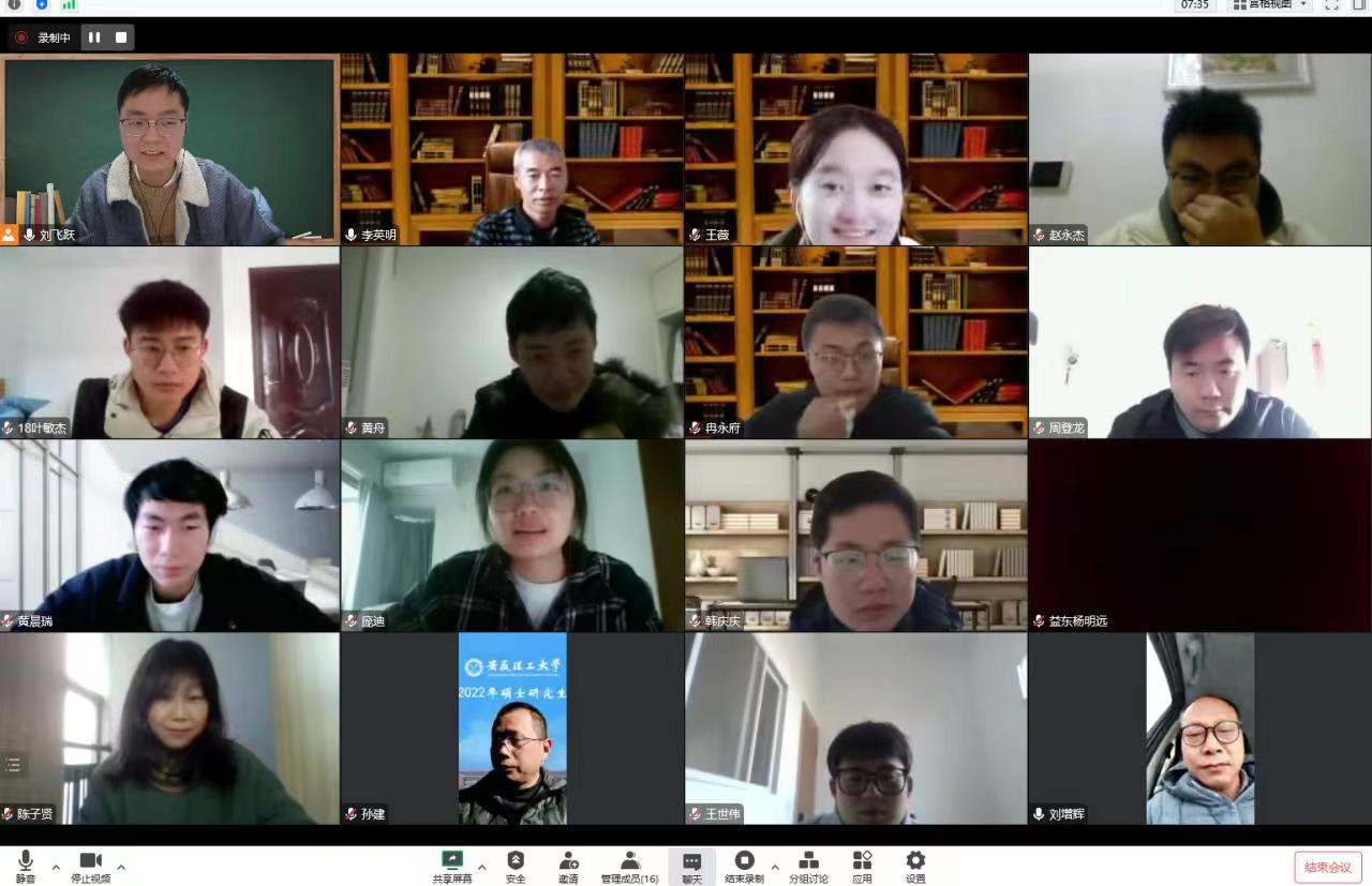 1月2日-6日,足球心水论坛 组织开展2023年首次学术论坛暨2021级硕士研究生开题答辩。受疫情影响,2021级89位硕士研究生按研究方向分八组,采用线上的方式举行开题答辩。开题答辩评审组由足球心水论坛 各学科带头人、研究生导师以及青年教师组成。足球心水论坛 其他年级研究生进行观摩学习。