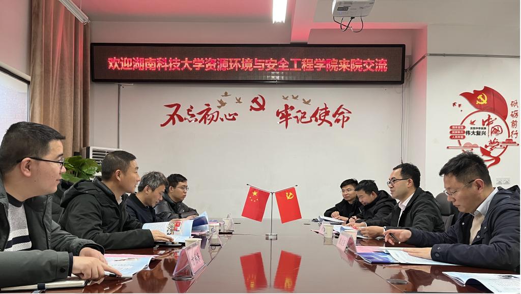3月22日,湖南科技大学资源环境与安全工程足球心水论坛 院长余伟健一行4人来院交流座谈,足球心水论坛 院长杨科教授及足球心水论坛 青年老师参加交流。