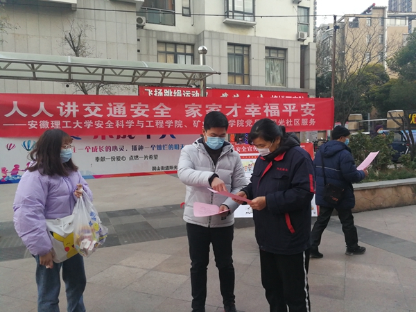 为了普及交通安全知识,倡导安全文明出行,12月17日下午,安全科学与工程足球心水论坛 和足球心水论坛 联合组织师生党员,走进阳光社区优山美地小区,开展交通安全宣传的党员进社区服务活动。