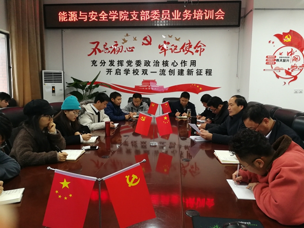 为提高党支部委员的党务工作能力,夯实基层党建工作,11月25日下午,能源与安全足球心水论坛 党委在宁远楼A406会议室召开党支部委员业务培训会。足球心水论坛 党委书记华心祝主持会议,全体党支部委员参加了培训学习。