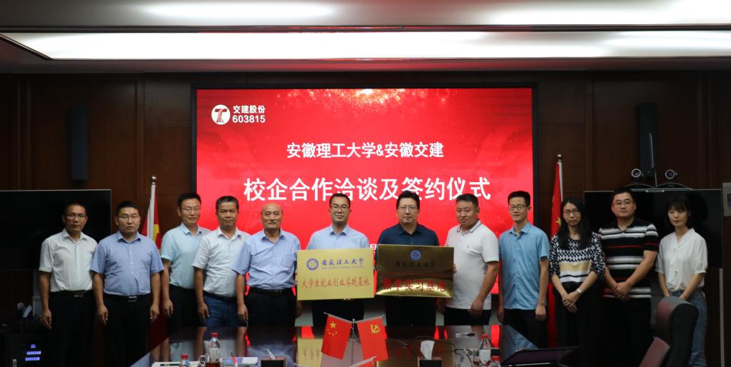 在安徽省交通建设股份有限公司,双方签署了战略合作协议、教学实习基地合作协议和毕业生就业创业基地合作协议,并举行了“教学实习基地、就业创业实践基地”授牌仪式。
