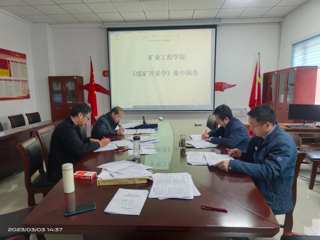 为提高课程建设质量和人才培养效果,加强课程组建设实效,结合专业认证课程目标与毕业要求的相关性,将教学考核标准落到实处,切实提升课堂教学质量。3月2日,足球心水论坛 《煤矿开采学》课程组教师在涂敏教授的带领下,在采矿工程系教研活动室开展了《煤矿开采学》专业核心课程试卷集中流水阅卷工作。